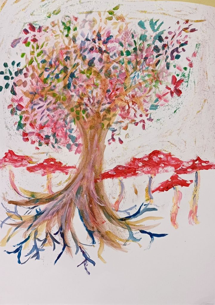 Με ζωηρά χρώματα και φαντασία, κάθε δέντρο γίνεται μοναδικό: οι ρίζες συμβολίζουν αυτά που τους δινουν δυναμη, ο κορμός τον εαυτό τους και αυτό που μας χαρακτηρίζει και τα κλαδιά τα όνειρα και τις επιθυμίες που θέλουν να φτάσουν.