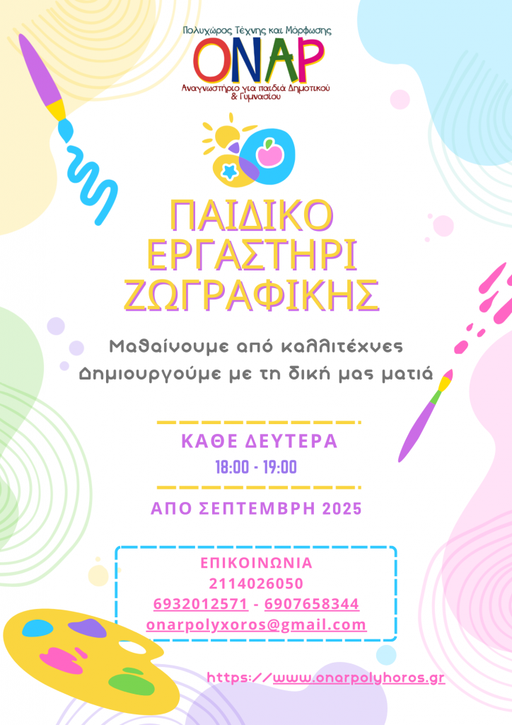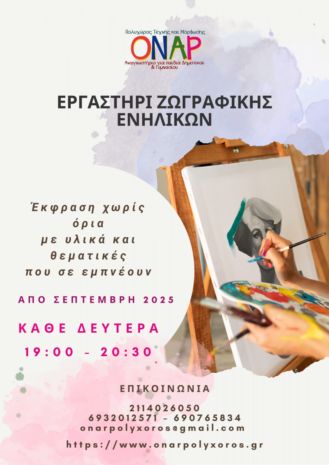 Από τον Σεπτέμβρη ξεκινoύν και πάλι τα εργαστήρια Ζωγραφικής στον πολυχώρο ΟΝΑΡ