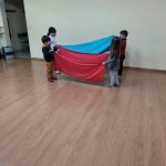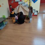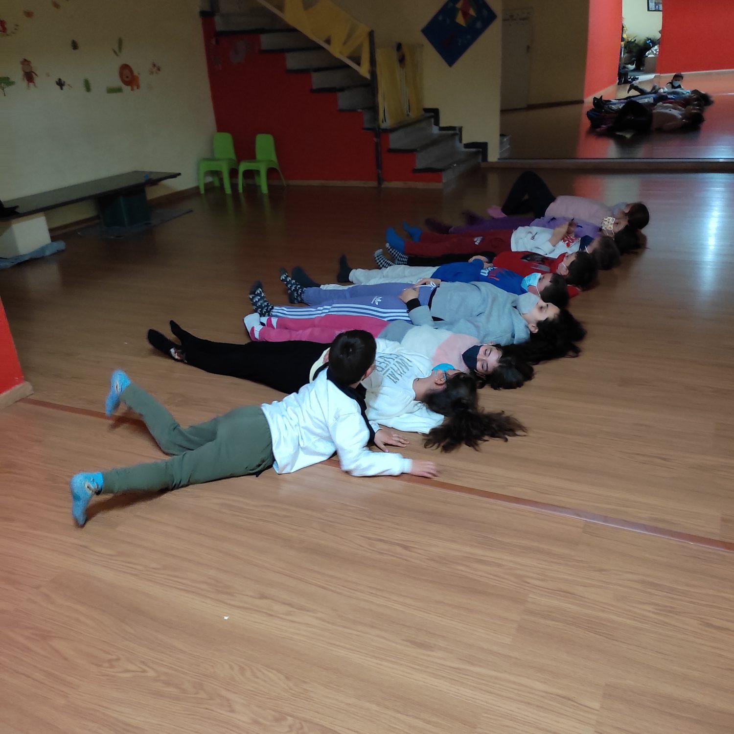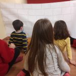 Μετά τα παιχνίδια συνεργασίας, κάναμε μια στάση για να ανακαλύψουμε τους πρώτους ανθρώπους. Πού ζούσαν; Πώς ήταν η καθημερινότητά τους; Σκαρφιστήκαμε και αφηγηθήκαμε ιστορίες και φτιάξαμε τη δική μας σπηλιά με τις δικές μας βραχογραφίες!