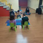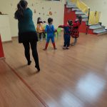 Η ομάδα ξεκίνησε με κινησιολογικά παιχνίδια και ασκήσεις φωνολογικής ενημερότητας. Συνέχισε με παιχνίδια παντομίμας και αυτοσχεδιασμό.