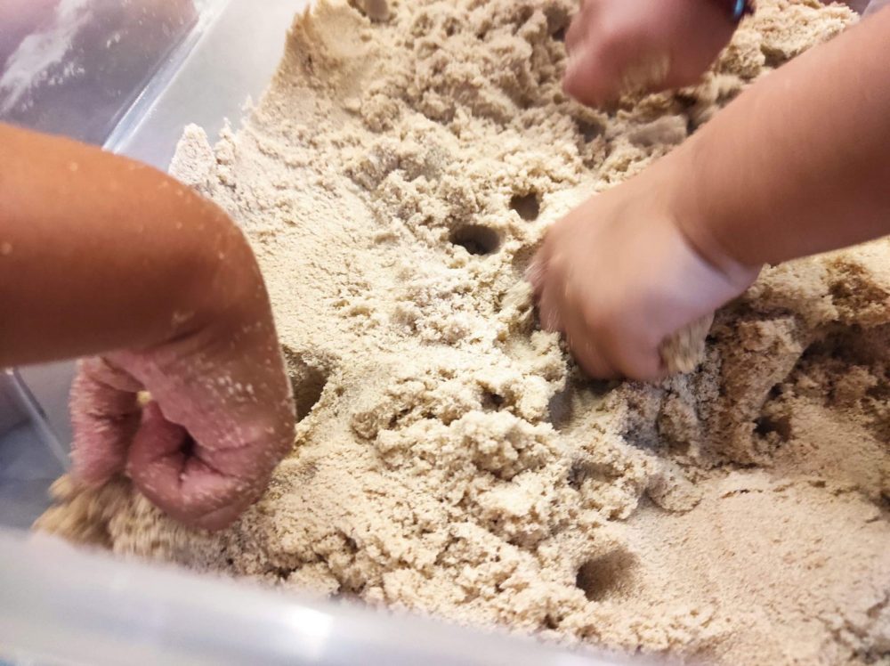 Με καλοκαιρινή διάθεση ακόμα, μοιραστήκαμε τα νέα μας και τις εμπειρίες μας από τις διακοπές και στρωθήκαμε στο παιχνίδι. Μετά τα μουσικά παιχνίδια και τις κινησιολογικές ασκήσεις μας, ήρθε η ώρα για αισθητηριακό παιχνίδι με την πολυαγαπημένη άμμο!