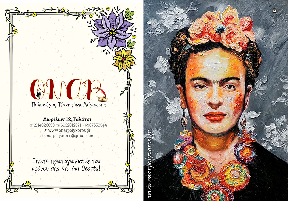 Κατά σειρά από πάνω αριστερά: Μιχαήλ Άγγελος, “Η δημιουργία του Αδάμ” – Σαλβαδόρ Νταλί, “Η Εμμονή της Μνήμης” – Πέτερ Πάουλ Ρούμπενς, “Η σφαγή των νηπίων” – Φρανθίσκο Γκόγια “Η 2α Μαΐου 1808” – Βασίλι Καντίνσκι, “Σύνθεση VIII”.