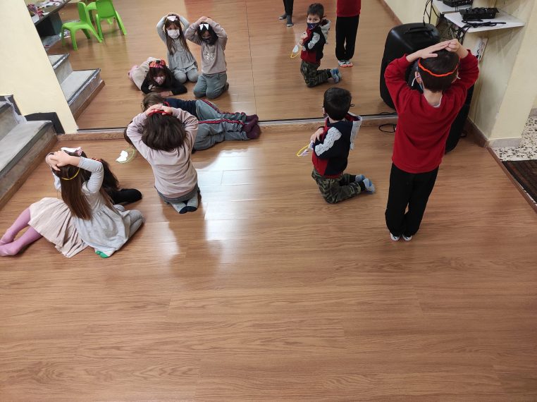 Παιχνίδια συντονισμού και συνεργασίας και μια ιστορία, όπου τα παιδιά σε ρόλο ζώων κλήθηκαν να αντιμετωπίσουν μια καταιγίδα στο δάσος αλλά και τις συνέπειες αυτής…χάθηκαν τα χρώματα!