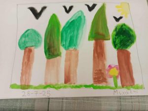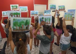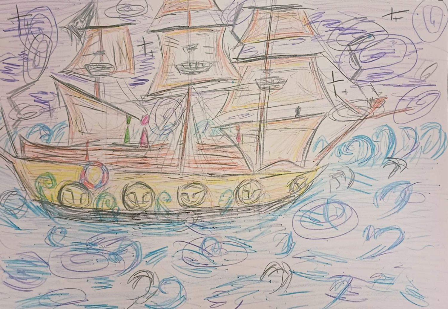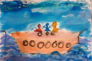 Στο μάθημα ζωγραφικής, τα παιδιά ταξίδεψαν με φαντασία πάνω σε ένα σκάφος που περνά φουρτουνιασμένη θάλασσα.